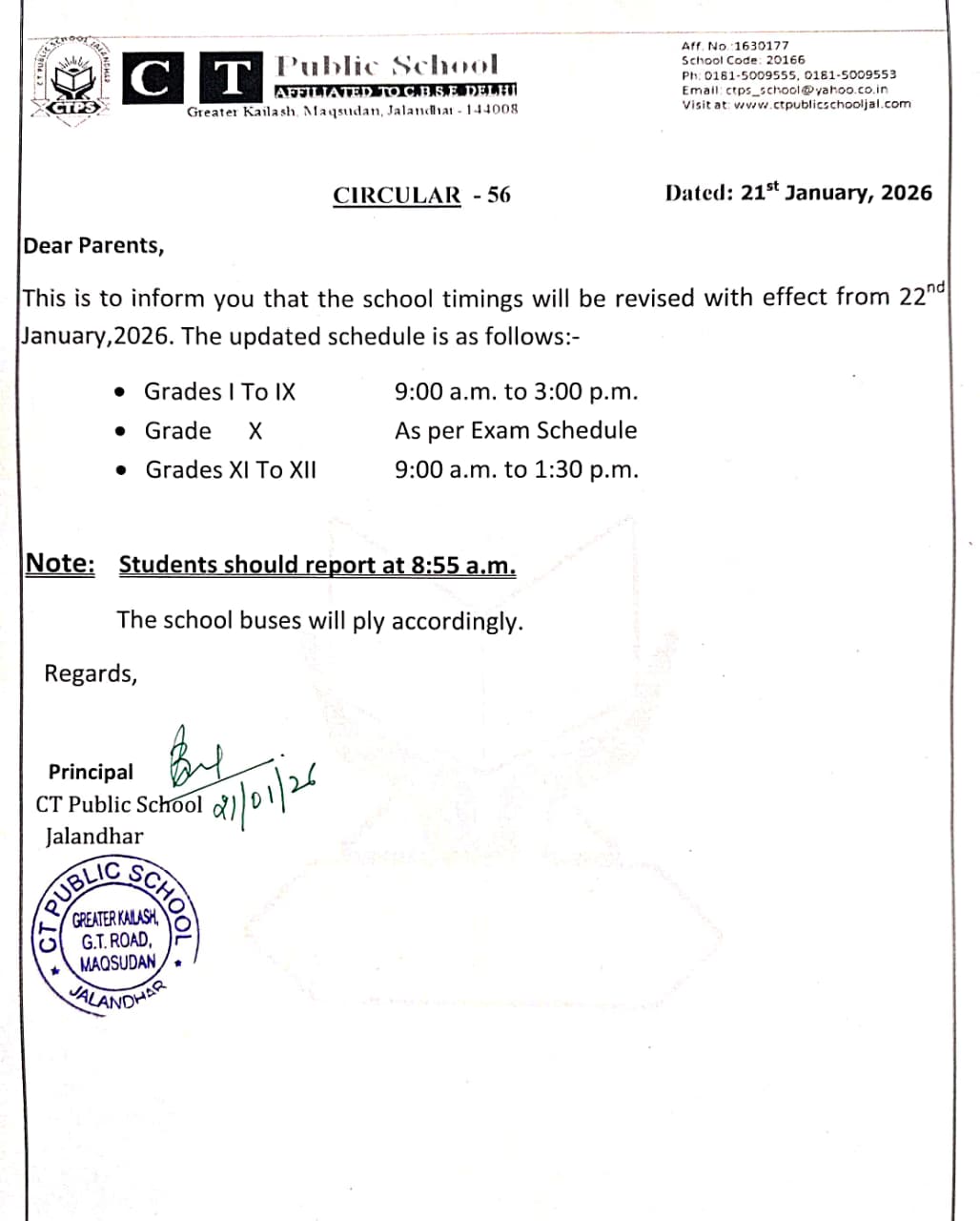 Revised School Timings