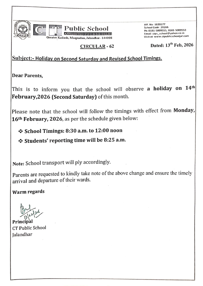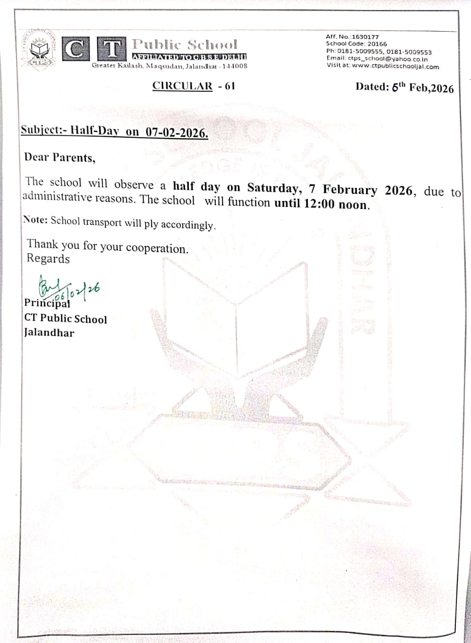 It is to inform that the school remains closed on 8/04/2026 due to Guru Nabha Das Jayanti.